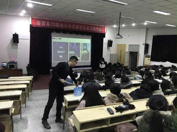 12月25日下午,泰州机电高职校经贸系在阶梯教室举行了2013级会计大专班顶岗实习推介会。 推介会上泰盈科技、建设银行等企业的人力资源负责人以PPT形式向学生们做精彩宣讲,介绍了企业文化、岗位需求、岗位要求、福利薪酬等,同学们被企业的宣讲深深的吸引。 推介会旨在为企业和学生搭建一个面对面、零距离、深度交流的平台,既服务于企业招揽人才,也为学生预就业提供方便。通过顶岗实习,学生们可以尽快实现从理论学习到就业上岗的无缝对接,积极转变就业观念,扎实作风,务实进取,实现早就业、就好业的人生目标。本次推介会的成功举办进一步增进了校企间的合作与交流,为企业吸纳优秀毕业生以及毕业生顺利就业打下了良好的基础。